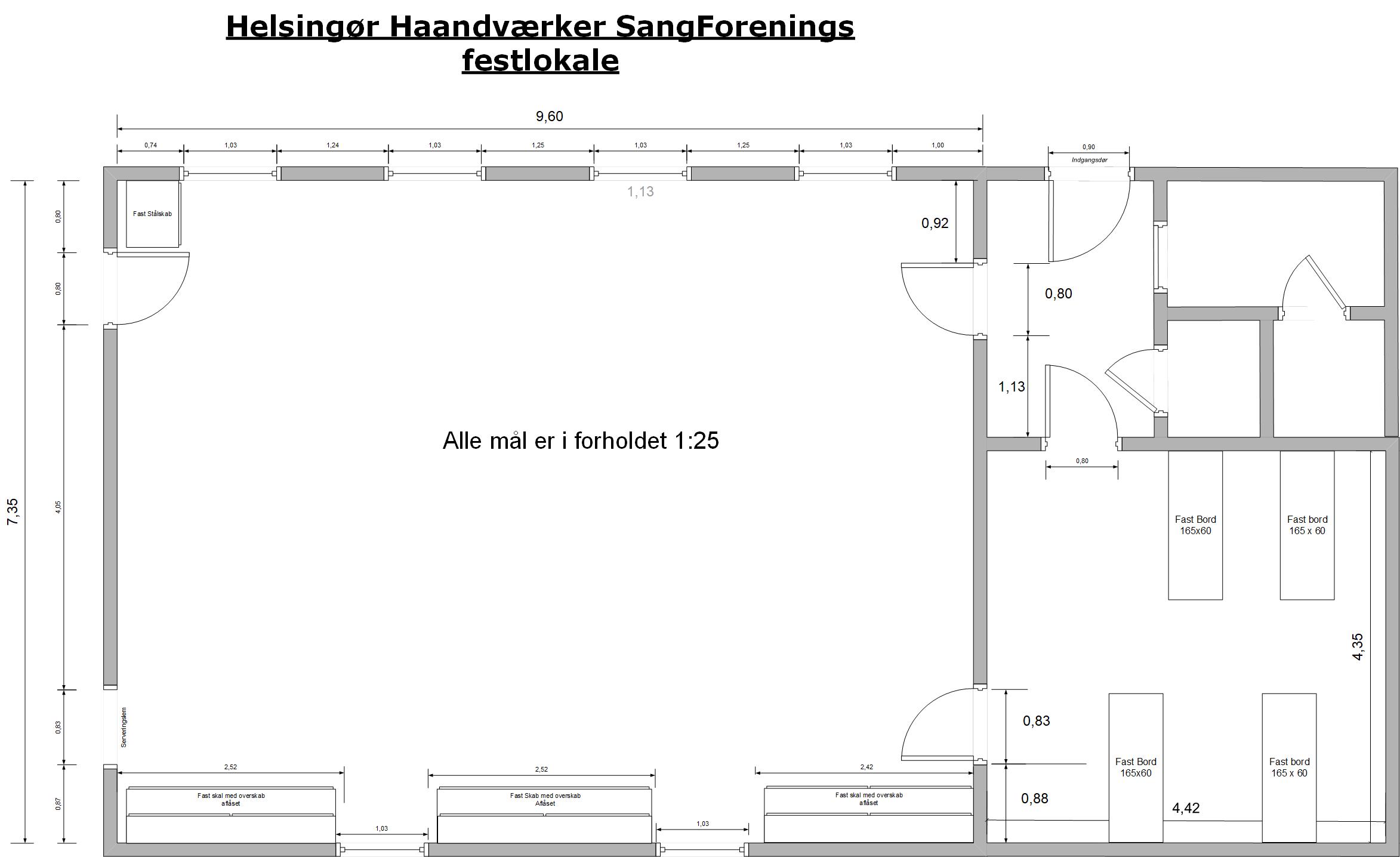 Måltegningen er i meter og censimeter i forholdet 1 : 25